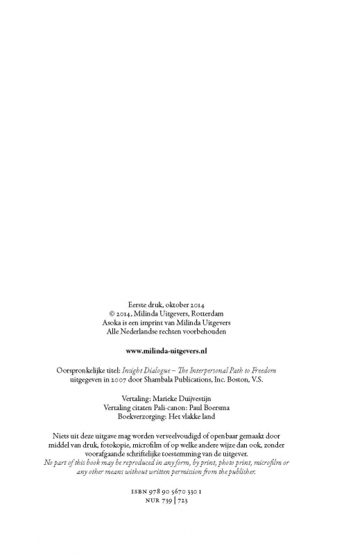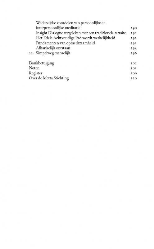“Gregory Kramer is een wijze gids op het interpersoonlijke pad van meditatiebeoefening. Hij presenteert met Insight Dialogue een prachtig beschreven methodiek, waarbij we zes praktische richtlijnen leren gebruiken bij het communiceren. Een rijke bron van inspiratie voor iedereen die op zoek is naar het verdiepen van de kwaliteiten van mindfulness en compassie, terwijl we met elkaar spreken en naar elkaar luisteren. Van harte aanbevolen!” Frits Koster, meditatieleraar, en Erik van den Brink, psychiater, geven beiden onderwijs op het gebied van mindfulness en compassie. Login of registreer om een recensie toe te voegen.